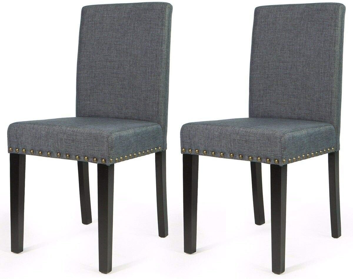 Amazon Com Grey Elegant Modern Dining Chairs Set Of 2 With Nailhead Trim For Kitchen And Dining Room Home Side Chair With Wood Legs Accent Furniture Chairs